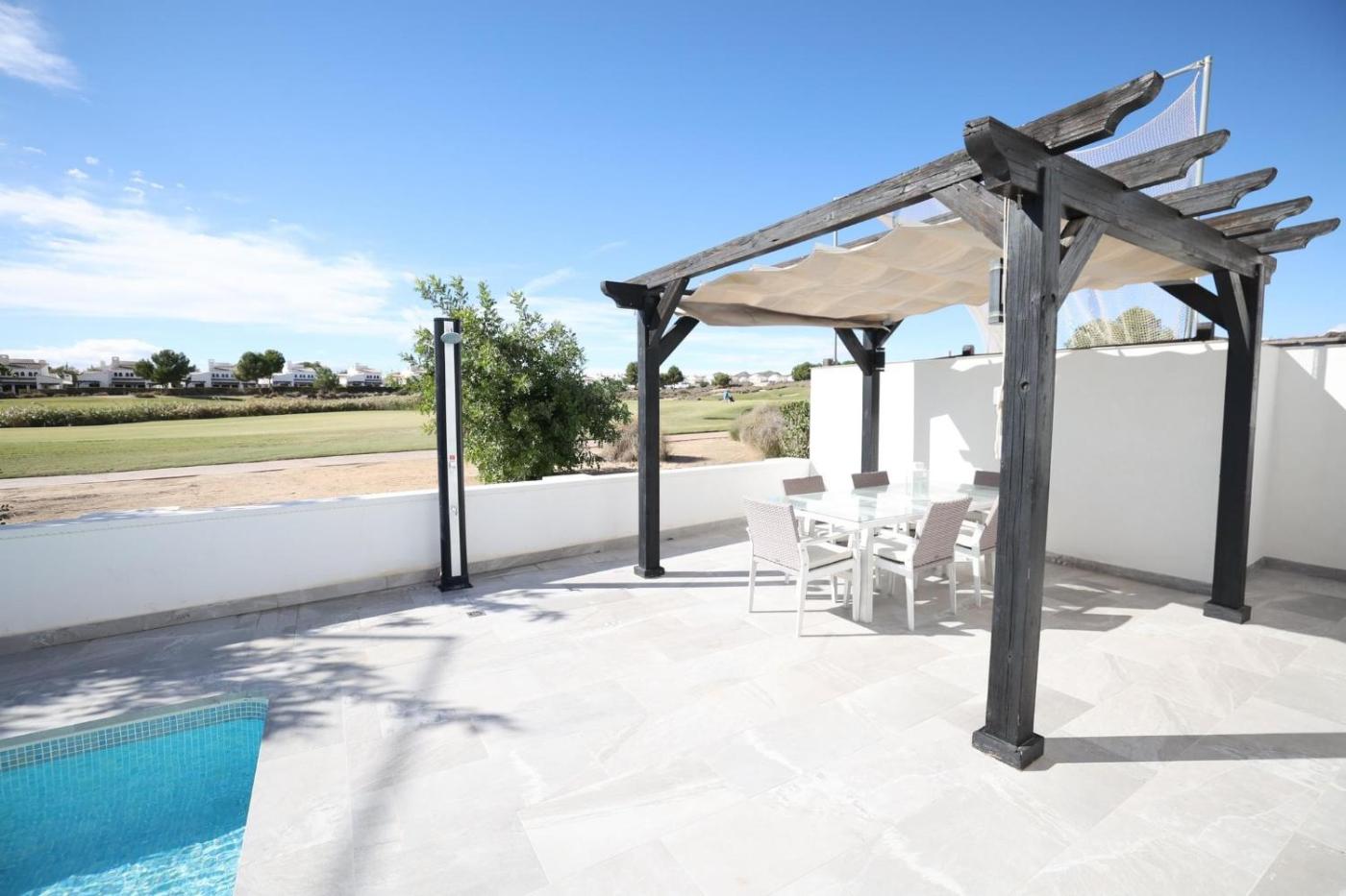 Villa de 3 dormitorios. This villa features a private pool. Boasting 3 bedrooms and 2 bathrooms with a hairdryer, this villa has a well-fitted kitchen and a terrace. The villas kitchen, which has kitchenware, is available for cooking and storing food. The air-conditioned villa features a flat-screen TV, a washing machine, a wardrobe, a tiled floor as well as garden views. The unit offers 4 beds.