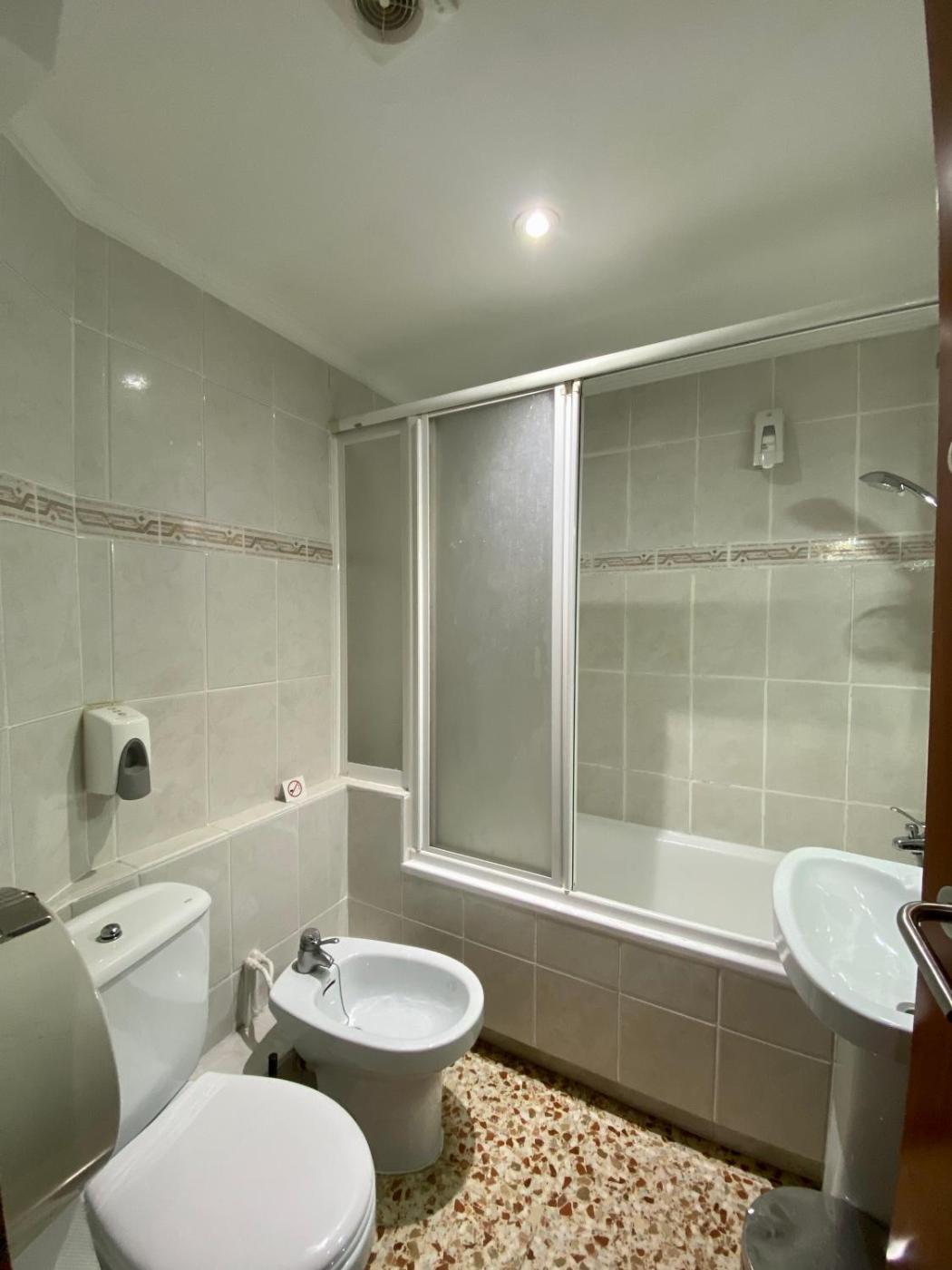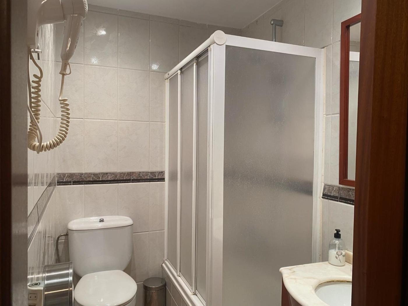 Habitación Doble con aseo compartido - 2 camas. The twin room offers air conditioning and a wardrobe, as well as a shared bathroom featuring a hairdryer. Rooms on the upper floors are reachable by lift. The unit offers 2 beds. ;