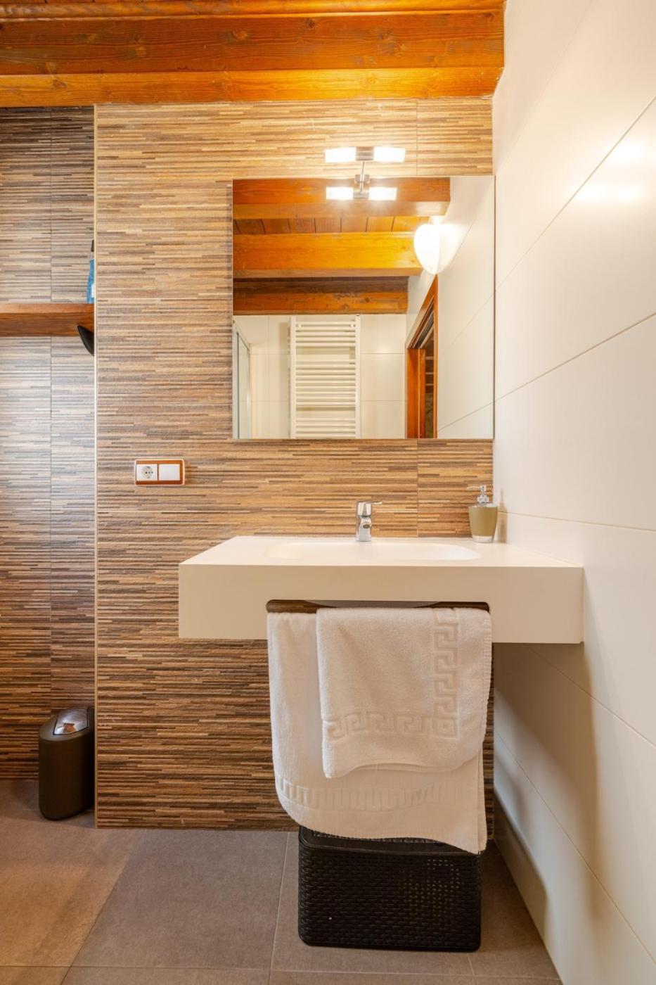 Esta casa rural con aire acondicionado consta de 2 dormitorios, una sala de estar, una cocina totalmente equipada con nevera y cafetera, y 2 baños con ducha y bañera de hidromasaje. Hay toallas y ropa de cama en la casa rural.