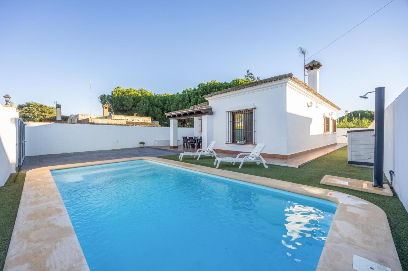 Brisa Marina se encuentra en Chiclana de la Frontera y ofrece piscina privada. Esta casa o chalet ofrece wifi gratis, una cocina totalmente equipada y un patio.