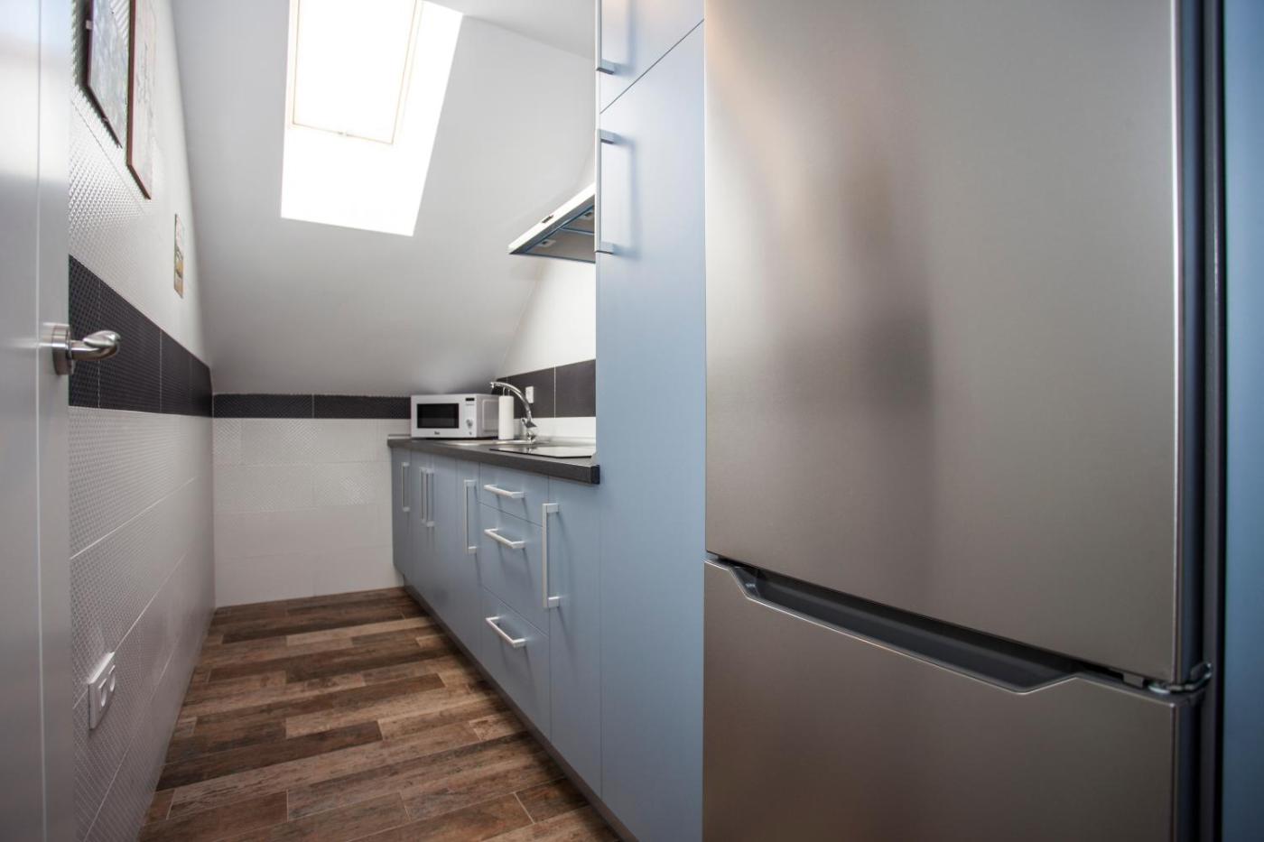 Loft. Apartamento con entrada privada, aire acondicionado, 1 dormitorio y 1 baño con ducha. La cocina está equipada con fogones, nevera, utensilios y microondas. El apartamento cuenta con suelo de baldosa, zona de estar con TV, teteracafetera, zona de comedor y armario. Tiene 2 camas. ;