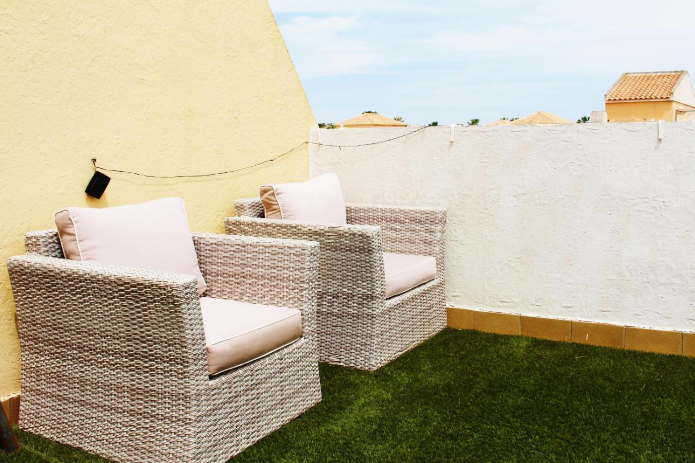 Villa de 3 dormitorios. Featuring a private entrance, this air-conditioned villa is comprised of 1 living room, 3 separate bedrooms and 1 bathroom with a bath and a hairdryer. Guests will find a stovetop, a refrigerator, an oven and a tea and coffee maker in the kitchen. The villa also has a barbecue. Boasting a terrace with garden views, this villa also offers a washing machine and a flat-screen TV. The unit offers 4 beds.