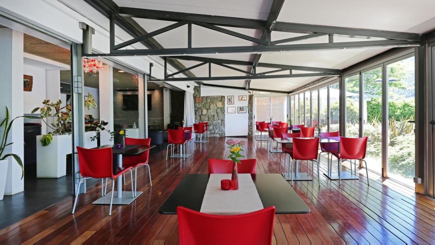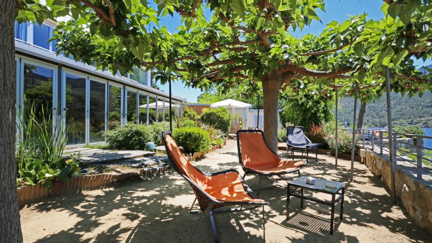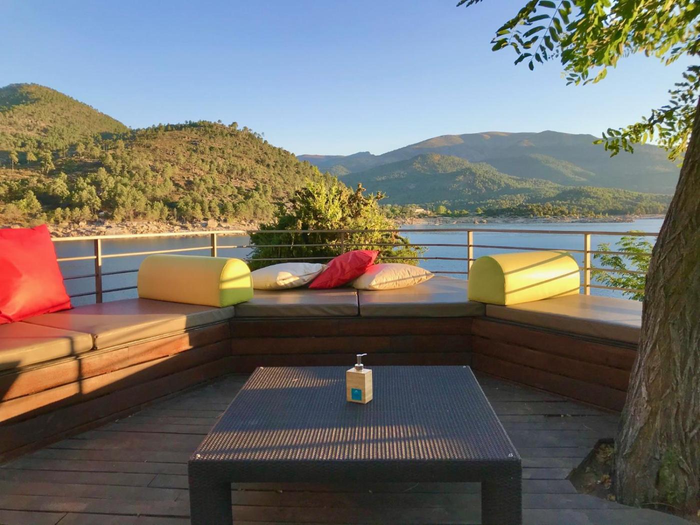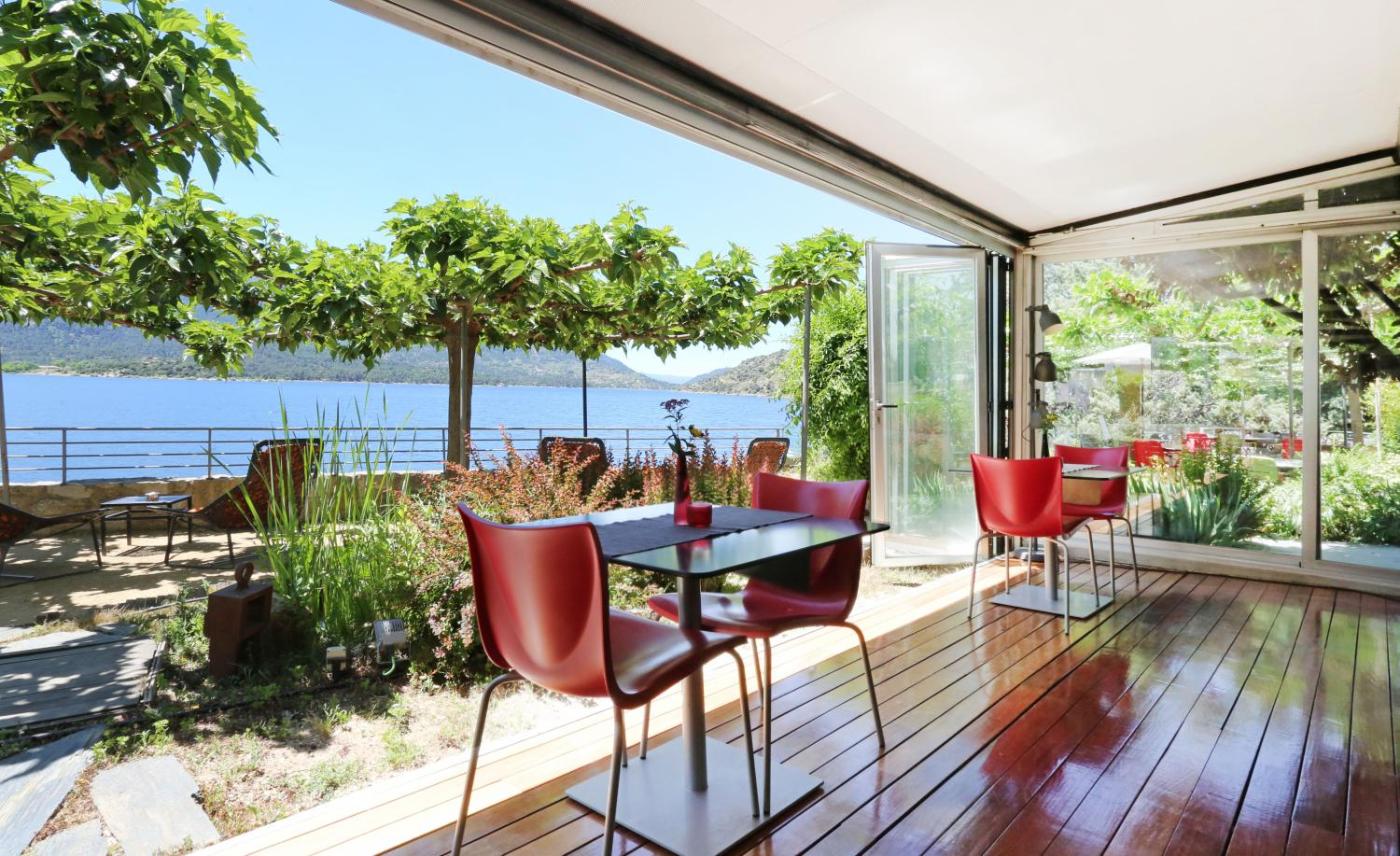 El establecimiento cuenta con un bar y una terraza junto al embalse, ambos con vistas impresionantes a las montañas y al campo.