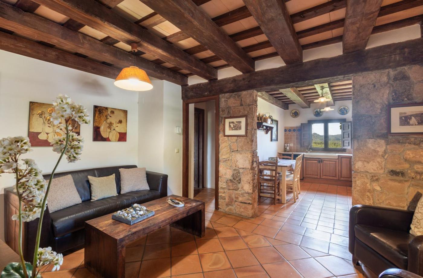 Habitación Cuádruple Superior. The fireplace is the standout feature of this quadruple room. Offering free toiletries, this quadruple room includes a private bathroom with a bath and a hairdryer. The well-fitted kitchen has a dishwasher, kitchenware, an oven and a microwave. The spacious quadruple room offers a TV with cable channels, a washing machine, a coffee machine, a high chair for children as well as garden views. The unit has 3 beds.