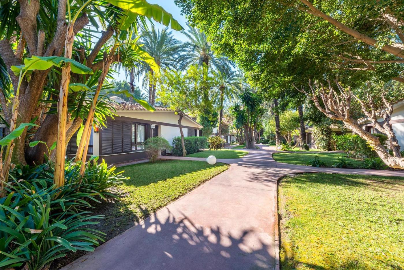 Los edificios de baja altura del Huerto del Cura están rodeados de exuberantes jardines. Las habitaciones incluyen aire acondicionado y conexión WiFi gratuita.