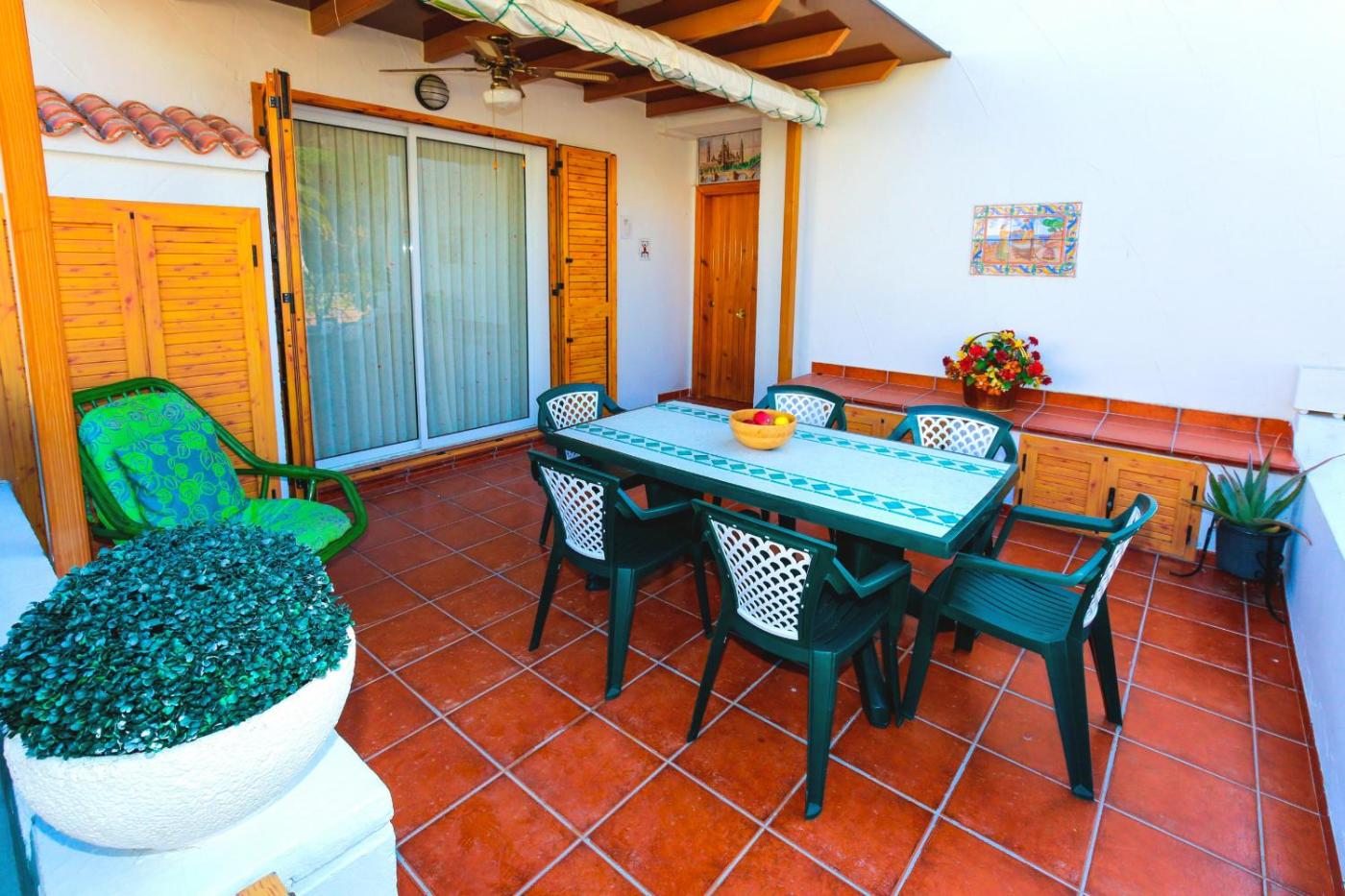 Apartamento con terraza. This spacious apartment comprises 1 living room, 2 separate bedrooms and 1 bathroom with a bath. Meals can be prepared in the kitchen, which comes with a refrigerator, a dishwasher, kitchenware and an oven. The apartment provides air conditioning, a washing machine, a tea and coffee maker as well as a terrace with garden views. The unit offers 5 beds.