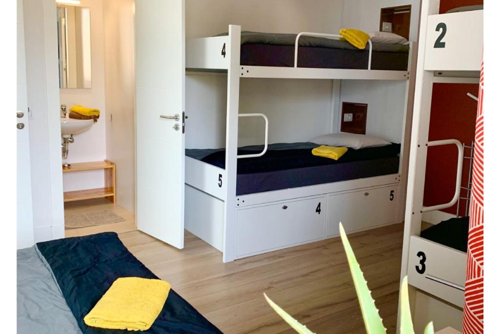 Cama en habitación mixta compartida de 5 camas. Las habitaciones miden 13 m². La ducha se encuentra en la suite. El aseo se encuentra fuera de la habitación. ;