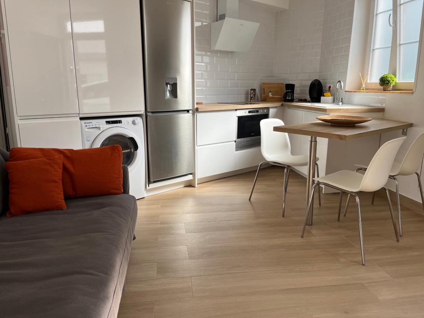 Este apartamento consta de 1 dormitorio, una sala de estar, una cocina totalmente equipada con nevera y hervidor, y 1 baño con ducha y secador de pelo. Hay toallas y ropa de cama en el apartamento.