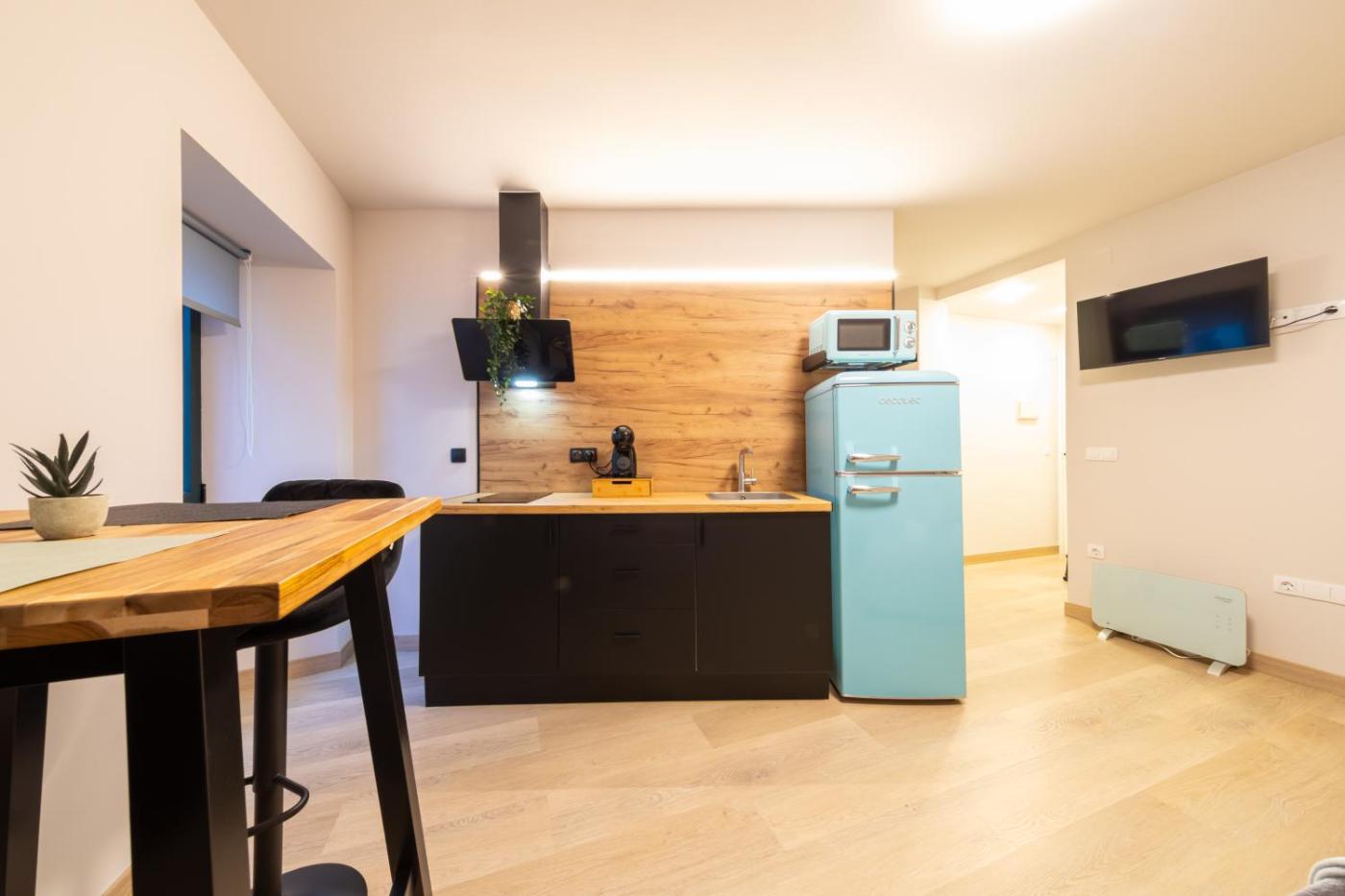 Apartamento. Boasting a private entrance, this apartment comes with a kitchen, 1 bedroom and 1 bathroom with a walk-in shower and a hairdryer. Guests can make meals in the kitchen that features a stovetop, a refrigerator, kitchenware and a microwave. The apartment features a coffee machine, a dining area, a wardrobe, heating and a flat-screen TV. The unit has 1 bed. ;