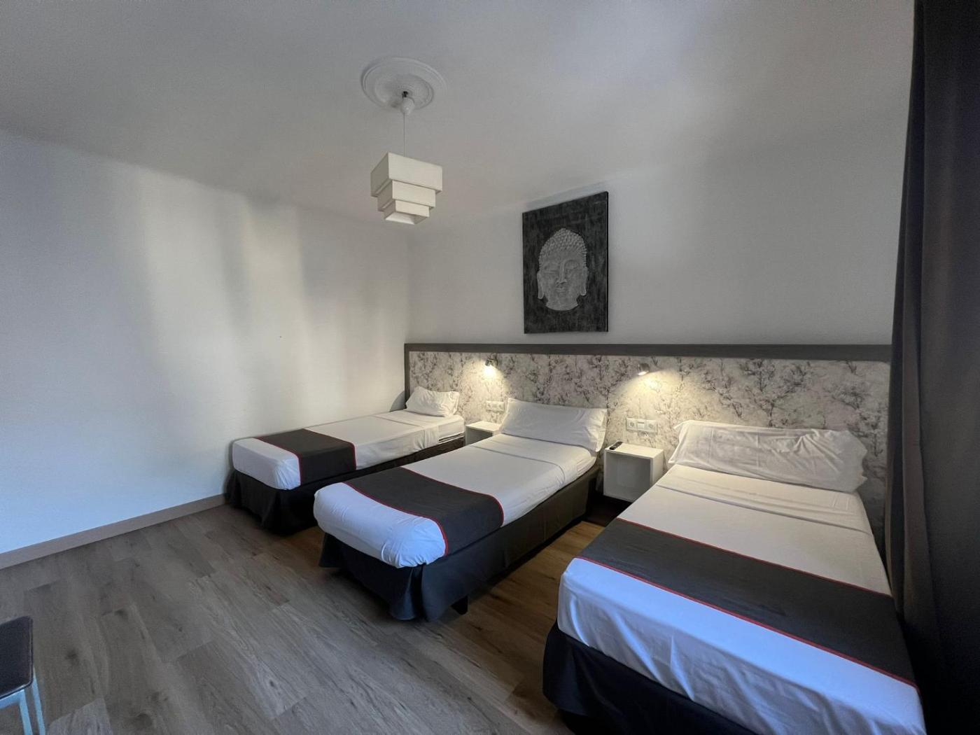 Habitación Triple Básica con baño compartido. Habitación triple con armario, calefacción y baño compartido con ducha. La cocina está bien equipada con placa de cocina, nevera, utensilios de cocina y horno. Habitación triple con aire acondicionado, TV de pantalla plana, lavadora, entrada privada y cafetera. La unidad dispone de 3 camas.