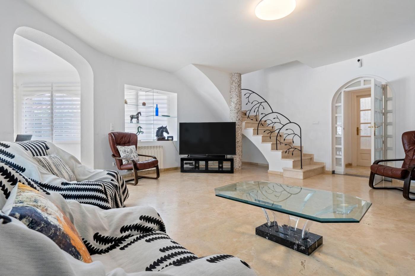 Casa. Featuring a private entrance, this spacious holiday home also comprises 5 separate bedrooms and 4 bathrooms with a shower and a hairdryer. Guests will find a dishwasher, kitchenware, an oven and a microwave in the fully equipped kitchen. The holiday home also provides guests with a barbecue. The air-conditioned holiday home provides a TV with streaming services, a washing machine, a coffee machine, tumble dryer as well as sea views. The unit offers 8 beds.