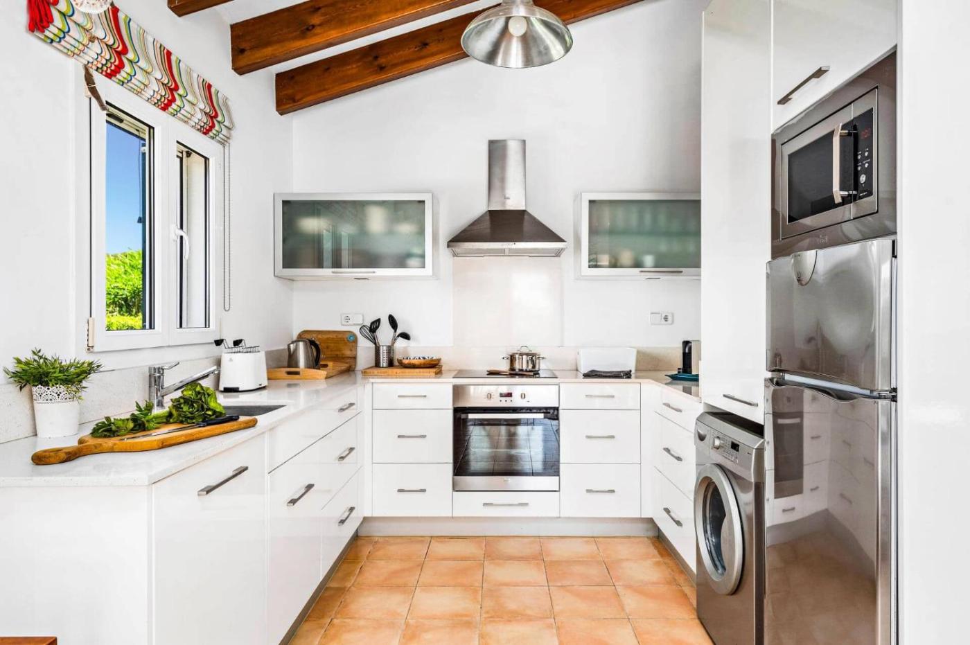 La villa cuenta con 3 dormitorios, una cocina con lavavajillas y microondas, y 3 baños con ducha, secador de pelo y lavadora. Hay toallas y ropa de cama en la villa.