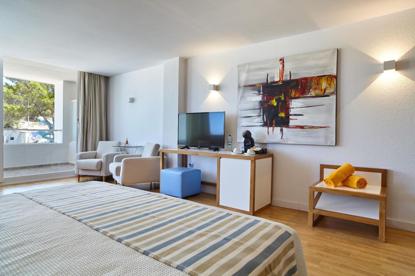 El Sandos El Greco Beach - Adults Only se encuentra en el extremo norte de Ibiza, junto a la playa de Portinax, con asombrosas vistas al Mediterráneo y con acceso a la playa de arena blanca.