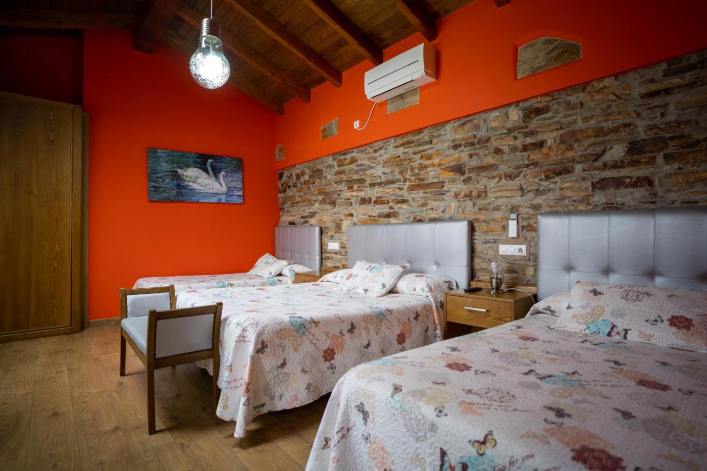 Habitación Triple. Esta habitación rústica cuenta con paredes de piedra y techo de madera. Dispone de conexión WiFi gratuita, TV y vistas al jardÃn. ;