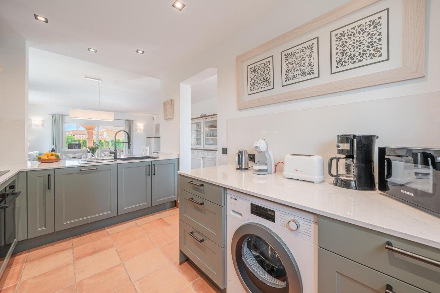 La villa tiene 2 dormitorios, 2 baños, ropa de cama, toallas, TV con canales vía satélite, cocina totalmente equipada y terraza con vistas al jardín.