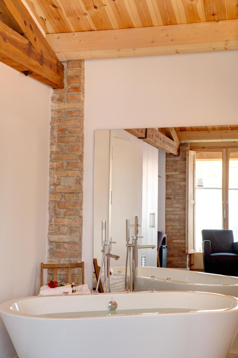 Habitación Doble Deluxe con chimenea y arcos. Esta habitación doble cuenta con 1 cama doble o 2 camas individuales y chimenea. La habitación doble con 1 o 2 camas es amplia y dispone de aire acondicionado, minibar, balcón con vistas a la ciudad y baño privado con ducha. ;