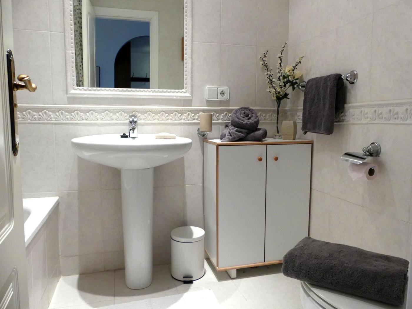 Apartamento Deluxe de 2 dormitorios con vistas al mar. Boasting a private entrance, this spacious apartment also features 2 separate bedrooms and 2 bathrooms with a bath and a hairdryer. Guests can make meals in the kitchen that has a dishwasher, kitchenware, an oven and a microwave. The air-conditioned apartment features a TV with streaming services, a washing machine, a coffee machine, a high chair for children as well as sea views. The unit has 2 beds.