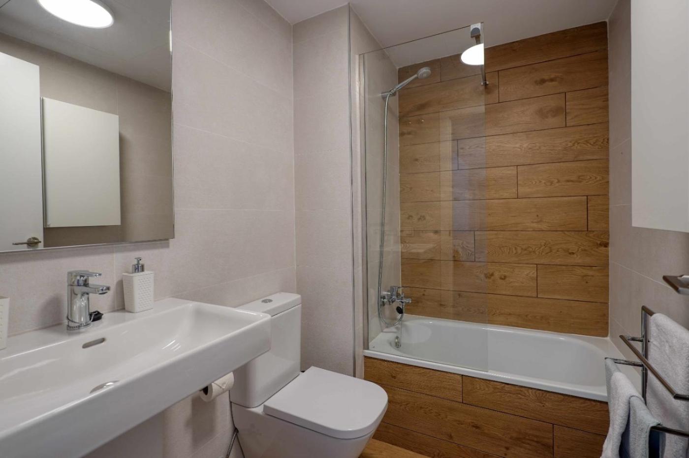 Este apartamento con aire acondicionado consta de 2 dormitorios, una sala de estar, una cocina totalmente equipada con nevera y cafetera, y 2 baños con ducha y secador de pelo. Hay toallas y ropa de cama en el apartamento.