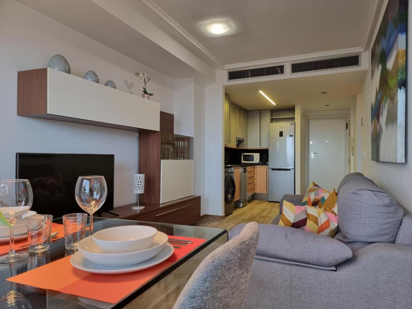 El apartamento ofrece bañera de hidromasaje. Apto en Ciudad de las Ciencias y cerca playa ofrece servicio de alquiler de bicicletas.