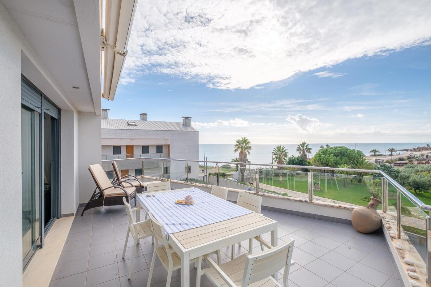Ático-dúplex geniales vistas al mar, que tiene vistas al mar, dispone de alojamiento con piscina al aire libre y terraza a unos 6 min a pie de Playa Lo Clot. Este alojamiento frente a la playa ofrece acceso a un patio.
